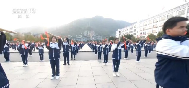 贵州望谟民族中学 韦秋雨:在每天大课间的时候都能参与学校的竹鼓操。