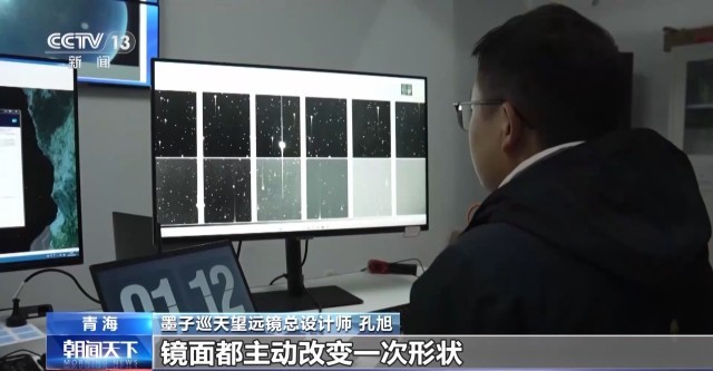 墨子巡天望远镜总设计师 孔旭:(主镜)上是一层银色的铝反射膜。星光打到镜面上以后,通过反射膜,反射到主焦装置上去。镜面可以随时调整形状,使得它任何时候都能完美地成像。这是我们一个硬核技术——薄镜面面型主动矫正技术。