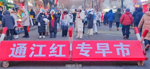 随着哈尔滨旅游的日渐火爆,游客攻略里的早市地图也扩大了。记者在道台府附近的十八道街早市等地也看到不少南方游客的身影。上海的陈先生告诉记者,他们一家特意做了攻略,专门到本地人多的早市来体验,“实惠不说,哈尔滨人好热情!我们想买个冻梨尝尝,老板直接送给我儿子一个,还欢迎我来哈尔滨旅游”。
