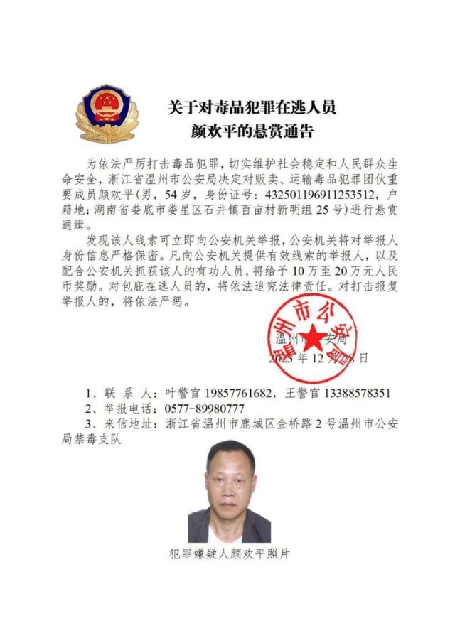 其中,湖南省郴州市公安局决定对张安龙、马文祥、吴玉杨进行公开悬赏通缉;湖南省株洲市公安局决定对杨金梅进行公开悬赏通缉;江西省新干县公安局决定对曾小勇、李国平、孙强进行公开悬赏通缉;浙江省温州市公安局决定对颜欢平进行公开悬赏通缉;四川省遂宁市公安局决定对母朝东进行公开悬赏通缉;贵州省黔东南州公安局决定对龙华进行公开悬赏通缉。