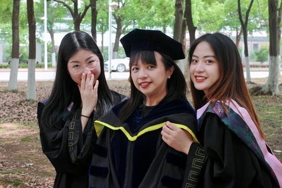 吴钰萍(图中)参加学生们毕业照拍摄。受访者供图