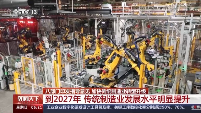 工业和信息化部等八部门近日联合印发《关于加快传统制造业转型升级的指导意见》。意见提出到2027年,我国传统制造业高端化、智能化、绿色化、融合化发展水平明显提升,有效支撑制造业比重保持基本稳定。
