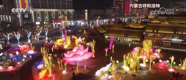 内蒙古呼和浩特市的大街小巷也挂起了各式各样的花灯。夜幕下的城市绚丽多彩,城市各主要街道、广场及交通节点都设置了不同的灯光景观。