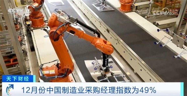 央视网消息:国家统计局、中国物流与采购联合会今天(12月31日)发布的数据显示,12月份中国制造业采购经理指数(PMI)为49%,我国经济总体产出景气水平保持稳定,来看报道。