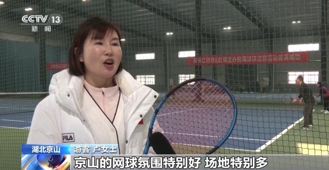 游客 卢女士:京山的网球氛围特别好,场地特别多,打网球的人也特别多,每年都会到京山打网球。