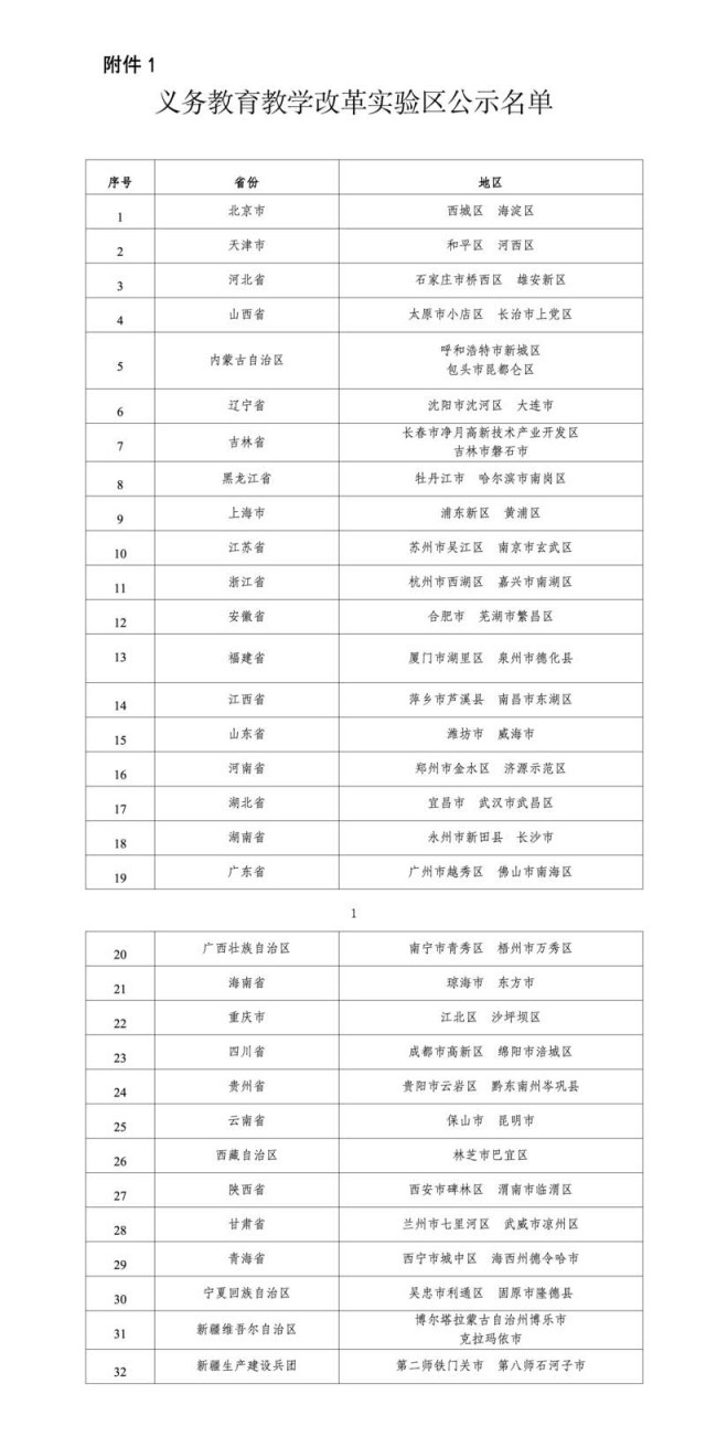 中国青年报客户端北京1月2日电(中青报·中青网记者 樊未晨)记者今天从教育部官网获悉,根据《教育部办公厅关于推荐义务教育教学改革实验区和实验校的通知》要求,各省级教育行政部门共推荐63个义务教育教学改革实验区和189所义务教育教学改革实验校,教育部已将名单在官网进行公示。