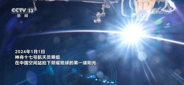 2024年1月1日,神舟十七号航天员乘组在中国空间站拍下照耀地球的第一缕阳光。