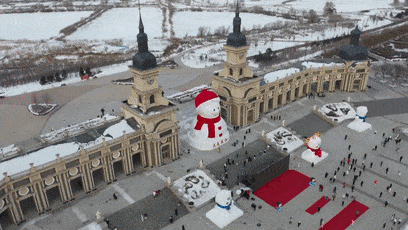 哈尔滨道里区群力音乐长廊18米高的大雪人 图源:“哈尔滨电视台新闻综合频道”微信公众号