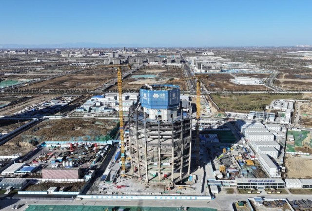 设计结构高度150米的中国中化大厦,是雄安新区较高的建筑之一。“每过7天,这座大楼就能‘长高’一层。”中建二局三公司中国中化大厦项目总工程师张剑林说。
