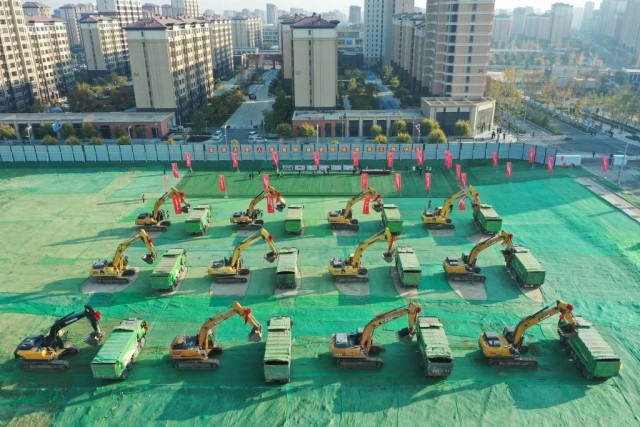 北京大学人民医院雄安院区建设工程项目开工动员会现场(2023年11月20日摄,无人机照片)。新华社发