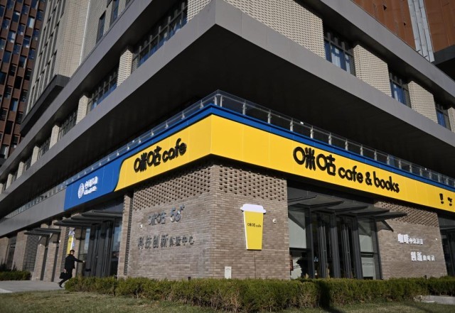 顾客在进入雄安新区一家咖啡馆(2023年11月30日摄)。新华社记者 牟宇 摄