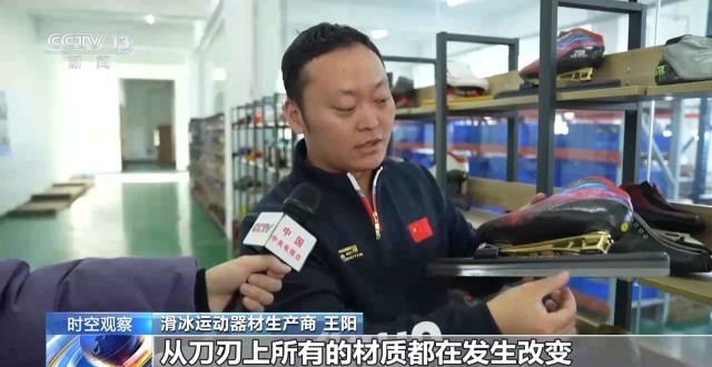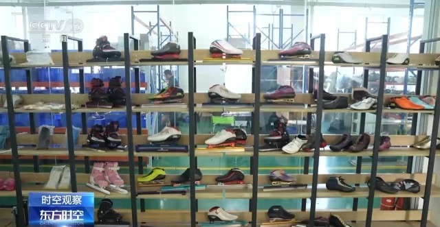 在吉林长春一家冰雪装备生产厂,车间里正在生产着最新款式的滑冰鞋。负责人介绍,比起以前,目前生产的滑冰鞋更加高端,最新的合金热处理工艺让刀片密度更好,滑度也更好,同时,鞋子也变得更轻、更薄、更合脚。