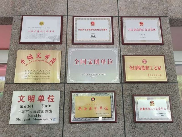 上海机杨边检站获得的部分荣誉称号。中青报·中青网记者 何春中/摄