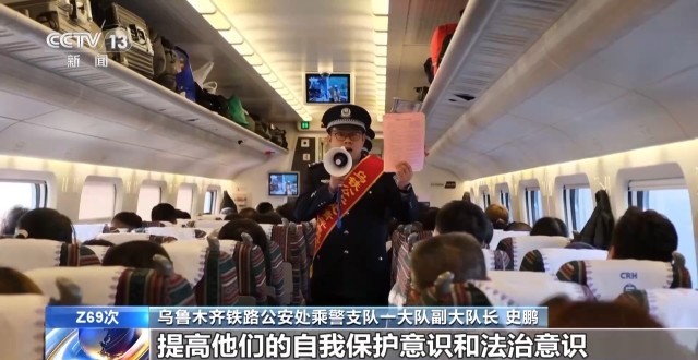 乌鲁木齐铁路公安处乘警支队一大队副大队长 史鹏:希望通过这种方式,能够让乘坐我们列车的旅客提高他们的自我保护意识和法治意识,确保旅客们平安出行。