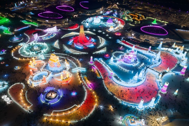 置身哈尔滨冰雪大世界,感受着25万立方米的冰和雪,在81万平方米的空地上创造出的奇迹,近万名能工巧匠不间断地精雕细琢,这是大自然的馈赠,更是力与美的结合。白天,它是晶莹光洁的冰雪奇缘;夜晚,它是闪耀烂漫的琉璃仙境。