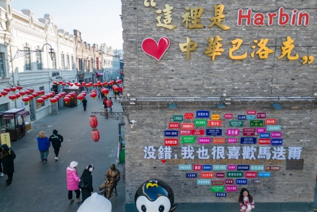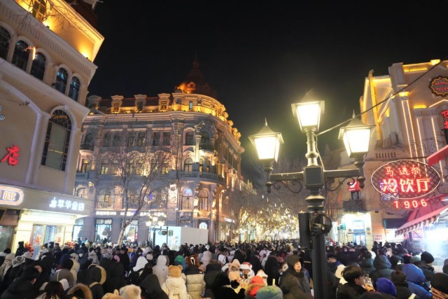 哈尔滨百年老街中央大街人头攒动。新华社记者 王建威 摄
