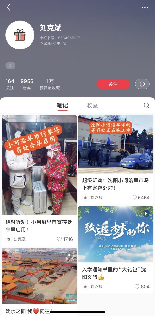 可见的是,刘克斌的账号总共只发布了4条笔记,前两条发布的时间还在2023年7月。截至发稿,刘克斌的账号没有头像和背景图,没有简介,也没有认证,但已有近万粉丝,笔记获赞与收藏数达1万。