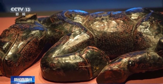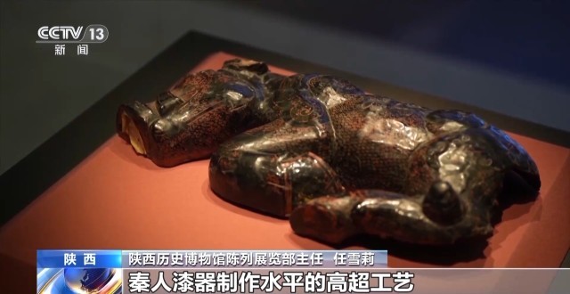 陕西历史博物馆陈列展览部主任 任雪莉:陕西其实是中国四大生漆产地之一,我们都知道一句话叫干千年湿千年不干不湿50年。漆器这种木质的东西在陕西地区其实是很难保存的,所以考古发掘的比较完整的漆器是很少见的。完整的这样一个漆器的猪是非常罕见的,而且很多细节也是惟妙惟肖。比如说猪的尖尖的獠牙,还有猪蹄子上面小小的凸起,另外猪身上彩绘也非常繁缛和细腻,都能够体现出秦人漆器制作水平的高超工艺。