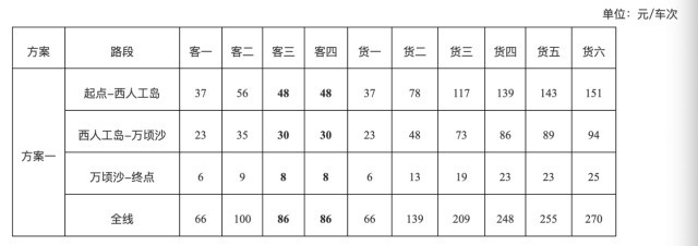 听证方案一:项目全线车辆通行费收费标准为66元/标准车次,执行全省高速公路统一的车型分类方式和收费系数;其中,三类客车、四类客车收费系数按现行系数的65%执行,收费标准均为86元/车次。