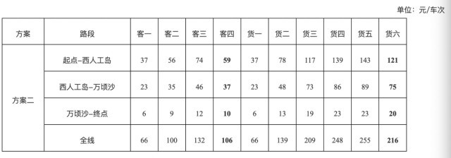 听证方案二:项目全线车辆通行费收费标准为66元/标准车次,执行全省高速公路统一的车型分类方式和收费系数;其中,40座以上大型客车和六类及以上货车(含六类以上专项专业车)收费系数按现行系数的80%执行,其收费标准分别为106元/车次、216元/车次。