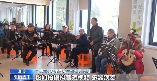 山东淄博市灯塔幸福苑工作人员 李明:更多的是精神方面、文化方面的需求,比如拍摄抖音短视频、乐器演奏、这些都需要专业人士来指导。希望更多的专业人士和志愿者参与进来,满足老年人多样化的需求。