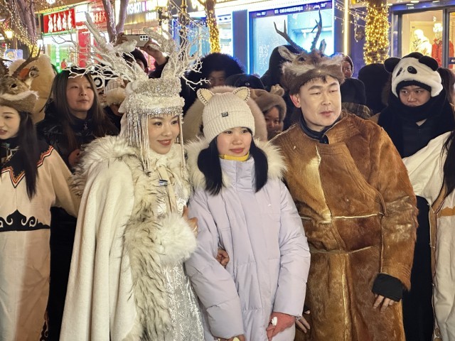 1月5日,大兴安岭塔河县身着浓郁民族特色服饰的“白鹿仙子”和鄂伦春族非遗传承人一亮相哈尔滨中央大街,就吸引了无数游客的目光。“白鹿仙子”与大家互动送祝福,鄂伦春传承人为大家演唱了《鄂伦春族小调》、演奏了鄂伦春族口弦琴,并用鄂伦春语问候大家“新年好”,让广大游客体验了一次独特的鄂伦春文化魅力。
