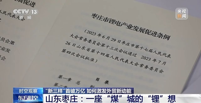 出口超90亿元,同比增长超过40%,这是2023年全年山东外贸“新三样”交出的成绩单。根据海关统计,2023年全年,山东省锂电池出口超47亿元,增长超120%。2023年1—11月,山东枣庄新能源及锂电产业营收约占全市六大先进制造业产业营业收入的21%,排名第二,成为重要支撑产业。山东枣庄是一座因煤而建、因煤而兴的城市,而如今的枣庄把锂电作为重点培育的主导产业,推动新能源代替传统能源,用地上能源代替地下能源,用绿色能源代替“黑色”能源。一座煤炭之城是如何成功实现绿色化转型和快速发展的呢?