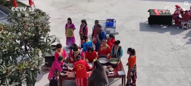 在四川绵阳市北川县石椅村,一大早,村民和志愿者就忙着熬制腊八粥。石椅村熬制的腊八粥是咸味的,食材除了糯米、花生、白萝卜、胡萝卜,还有当地的特产腊肉和豆干。经过一个多小时的熬制,别具风味的腊八粥就起锅了。村民们摆上长桌宴,把热腾腾、香喷喷的腊八粥端到游客面前,一起感受年味儿。