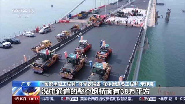 “国家卓越工程师”称号获得者、深中通道总工程师 宋神友:我跟我的同事们有个最大的品质就是我们有执着的坚持。1万多名建设者历时7年建设期,才取得了今天这样的成绩,所以这样的一个荣誉,我觉得它是属于整个深中通道项目这个平台的,也是属于我们全体的建设者的。未来我们到底面临这种超大的交通量,能不能为我们社会公众提供高品质的交通功能服务,还有很多工作要做。
