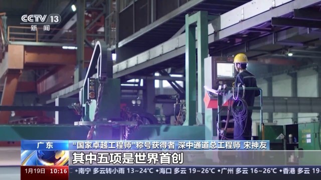 “国家卓越工程师”称号获得者、深中通道总工程师 宋神友:总共花了四年时间,开展了上百组实验,在国内把整个生产链给建立起来的。从钢壳的智能制造到智能预制再到智慧安装,研发了十项重大工程装备,其中五项是世界首创,它也实现了我们整个行业的转型升级。