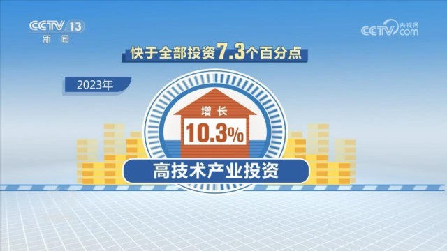 在投资领域,受房地产市场深度调整影响,2023年全年全国固定资产投资比上一年增长3%,而扣除房地产开发投资,民间投资增长9.2%。尤为值得注意的是,2023年高技术产业投资增长10.3%,快于全部投资7.3个百分点。其中,高技术制造业、高技术服务业投资分别增长9.9%、11.4%。