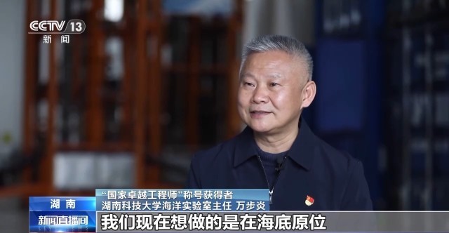 “国家卓越工程师”称号获得者 湖南科技大学海洋实验室主任 万步炎:我们现在想做的是在海底原位,就是在原地进行岩石力学还有土工力学方面的一些测试。这个一般是用于工程地质勘探,就像建房子一样,要知道地基的牢固程度。