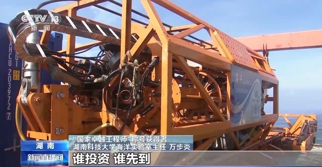 “国家卓越工程师”称号获得者 湖南科技大学海洋实验室主任 万步炎:联合国目前采用的规则是谁投资、谁先到,谁就拥有优先开发权。因为公海资源就那么多,实际上说是海底有很多矿产资源,但事实上西方国家已经在那里经营好几十年了,那留给我们的东西就越来越少,所以勘探是必须尽快。
