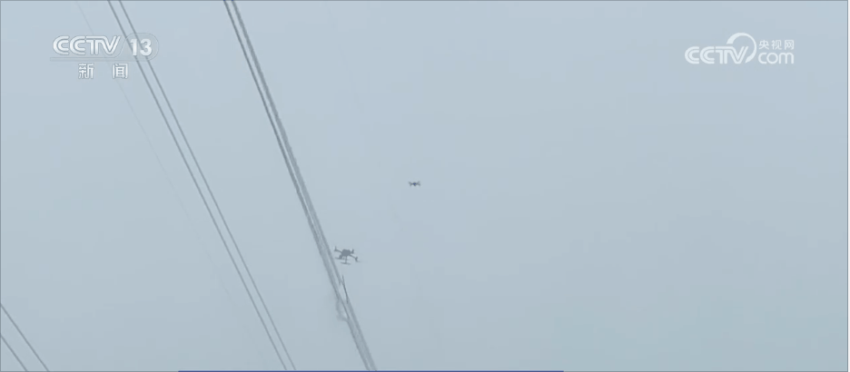 在山西晋城,接连多日的降雪天气导致多条输电线路出现不同程度覆冰,当地电力部门利用无人机对线路进行带电除冰,及时消除线路安全运行隐患。