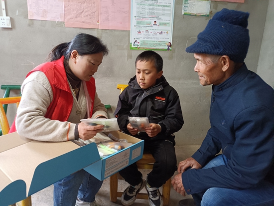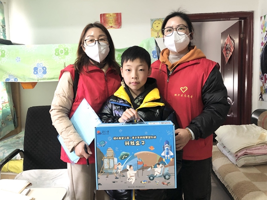荆门市掇刀区志愿者家访并赠送“希望微心愿”礼包。