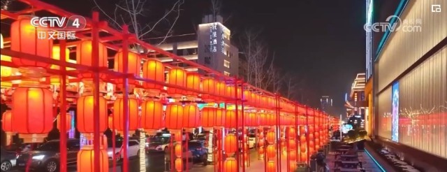 在河南郑州,上万盏新年灯饰扮靓了大街小巷,营造出浓厚节日氛围。在管城区顺城街,道路两旁的行道树被诗词灯牌“点亮”。