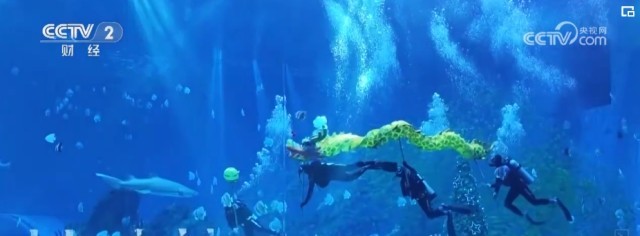 在郑州一家海洋主题公园,4名潜水员化身“舞龙高手”,伴随着他们的一招一式,一条金龙在水中腾挪起伏,向人们传递万物生辉的新春祝福。