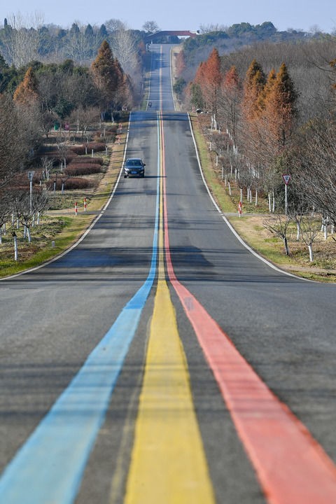 在常州南山的绵延叠翠间,一道“彩虹”在丘陵中起伏。行驶在这条由红黄蓝三色标识描摹的“一号公路”上,目之所及皆青翠,不时有白墙黛瓦的村落、湖泊和飞鸟映入眼帘。公路串起溧阳大小村落与旅游资源,带动沿线10万农民增收。