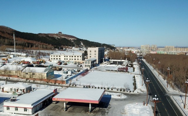 2月2日拍摄的中石油黑龙江抚远东方第一加油站(无人机照片)。