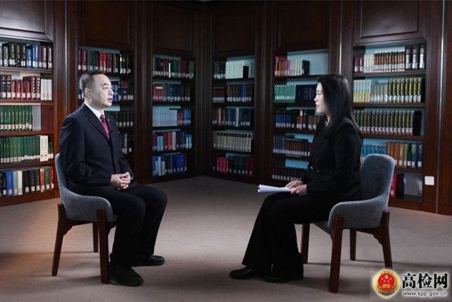 最高人民检察院第四检察厅厅长张晓津做客访谈。图片来源:最高检官网