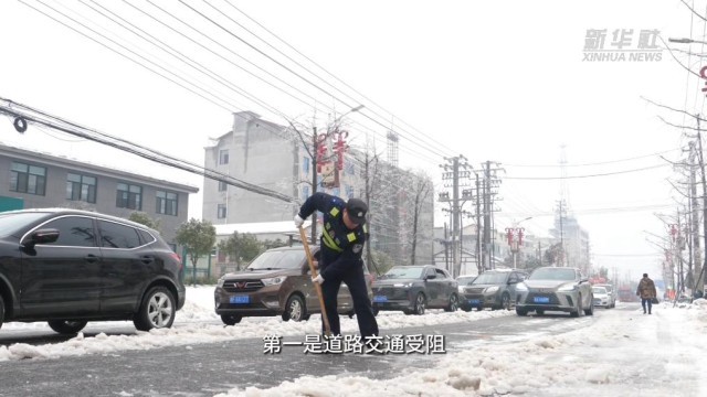 在湖南省临湘市羊楼司镇,部分路段路面覆冰较为严重,引发拥堵。临湘市相关部门建立了59支应急救援队伍,共1300多人,开展“扫雪除冰行动”。