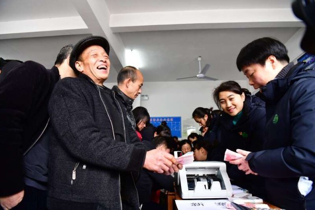 居住在龙脊梯田景区的村民领到“年终奖”很是开心。龙胜县委宣传部供图