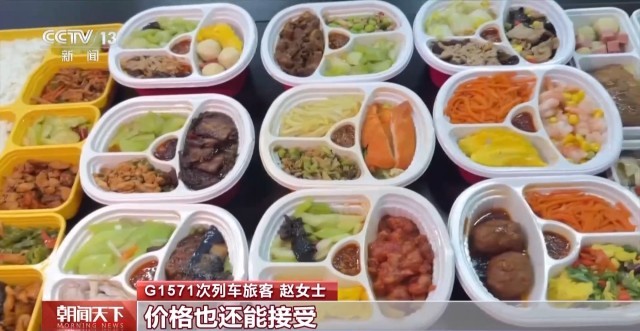 G1571次列车旅客 赵女士:以前在高铁上吃到的,可能就是比较简单的那种,现在的话可以有很多选择,我觉得和外面饭店做得差不多,价格也还能接受。