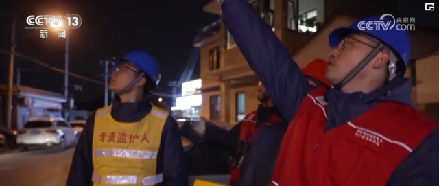 刘瑶和他的同事电力人员手持检测设备,沿着线路逐一巡查,在一根电线杆下,他们停下来了巡查的脚步。