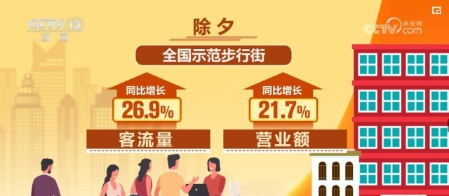 据商务部大数据监测,2024年除夕,部分重点大型超市即时零售销售额同比增长约20%。除夕当天,重点电商平台在线餐饮销售额同比增长40.8%,全国示范步行街客流量、营业额同比分别增长26.9%和21.7%。