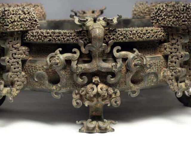 “这件文物上的龙纹饰以数量之多、造型之精美而闻名。”湖北省博物馆陈列部主任曾攀说,曾侯乙尊盘的“零部件”数以百计,得以构成繁缛的纹样,又呈现高低参差和对称排列的整体造型,可谓“巧夺天工”,“其组装数量多、复杂程度高,一直无法被复制”。