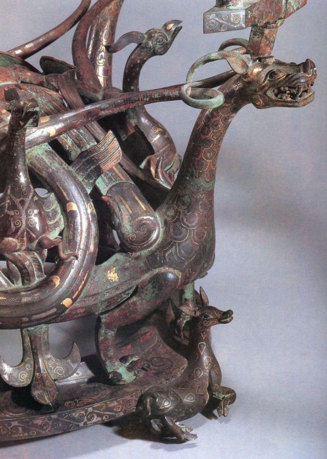 错金银四龙四凤铜方案的龙形案身(局部)(受访者供图)