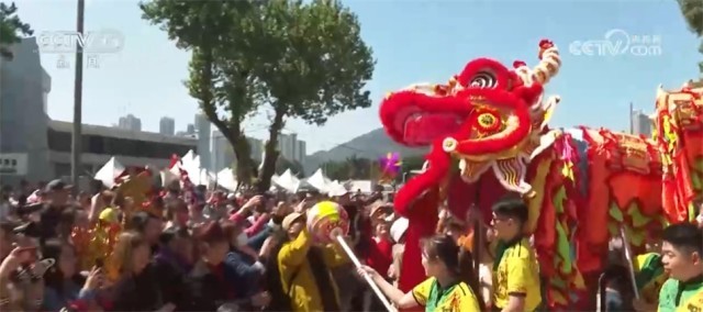 锣鼓喧天、金龙舞动、醒狮齐跃,精彩的舞龙舞狮表演吸引大批澳门市民和游客驻足观看,现场热闹非凡。