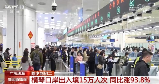 除夕到初二:横琴口岸出入境15万人次 同比涨93.8%