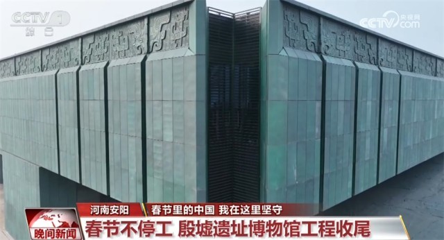 在河南安阳殷墟遗址博物馆,这个春节,百余工人坚守岗位正抓紧施工。殷墟遗址博物馆主馆高22米、宽146米,以“鼎”为设计主题,抽象演变青铜方鼎元素,整体呈现四方之形。该工程自开工以来,一直面临着天气多变、施工难度大等问题。